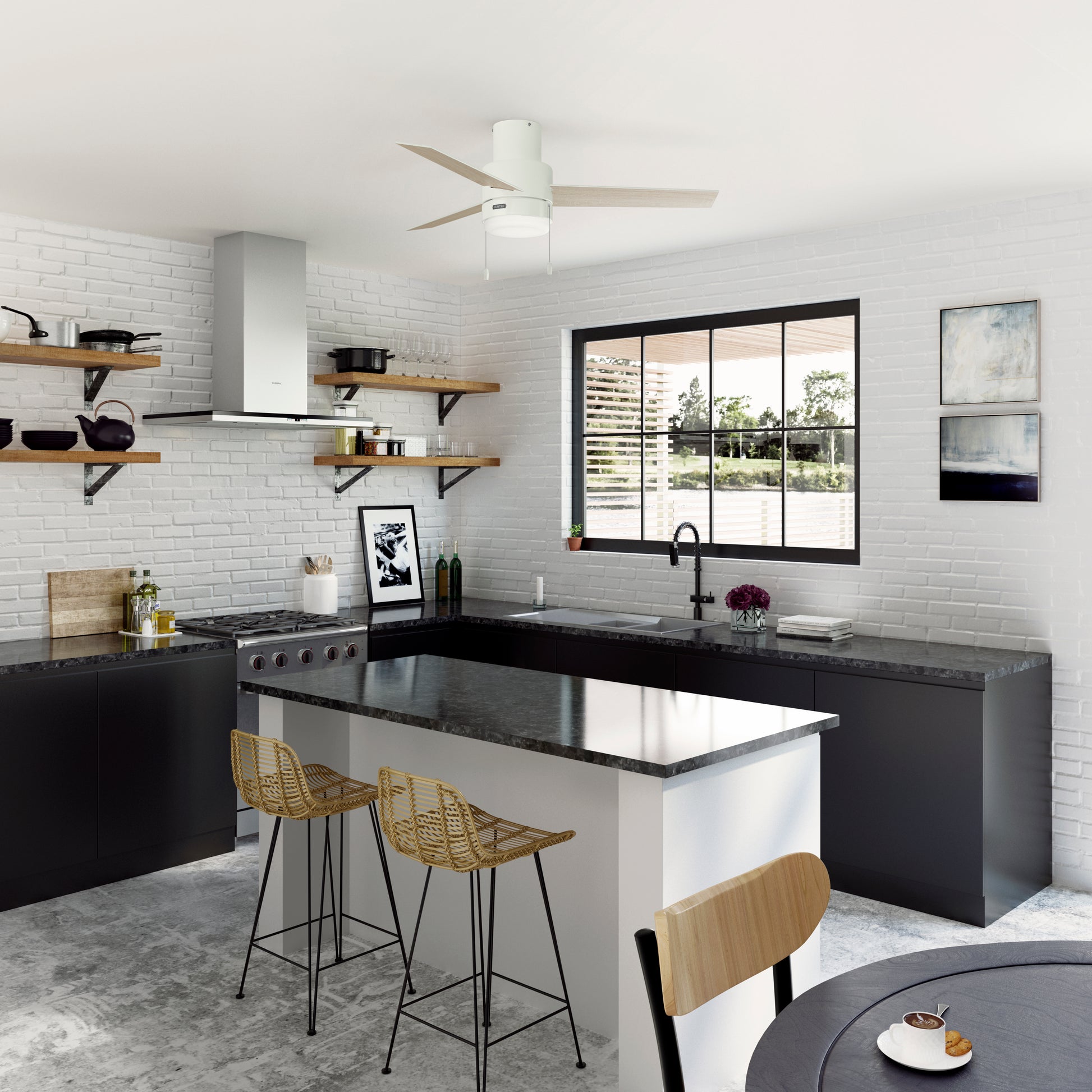 The Brunner ceiling fan is energy-efficient and uses dimmable LED bulbs, making it perfect for most indoor spaces like living rooms and master bedrooms. Its sleek and modern minimalist design makes it a perfect fit for any contemporary home. Mix and match with modern lighting from our lighting collections. We have everything you need to finish your rooms with style.
