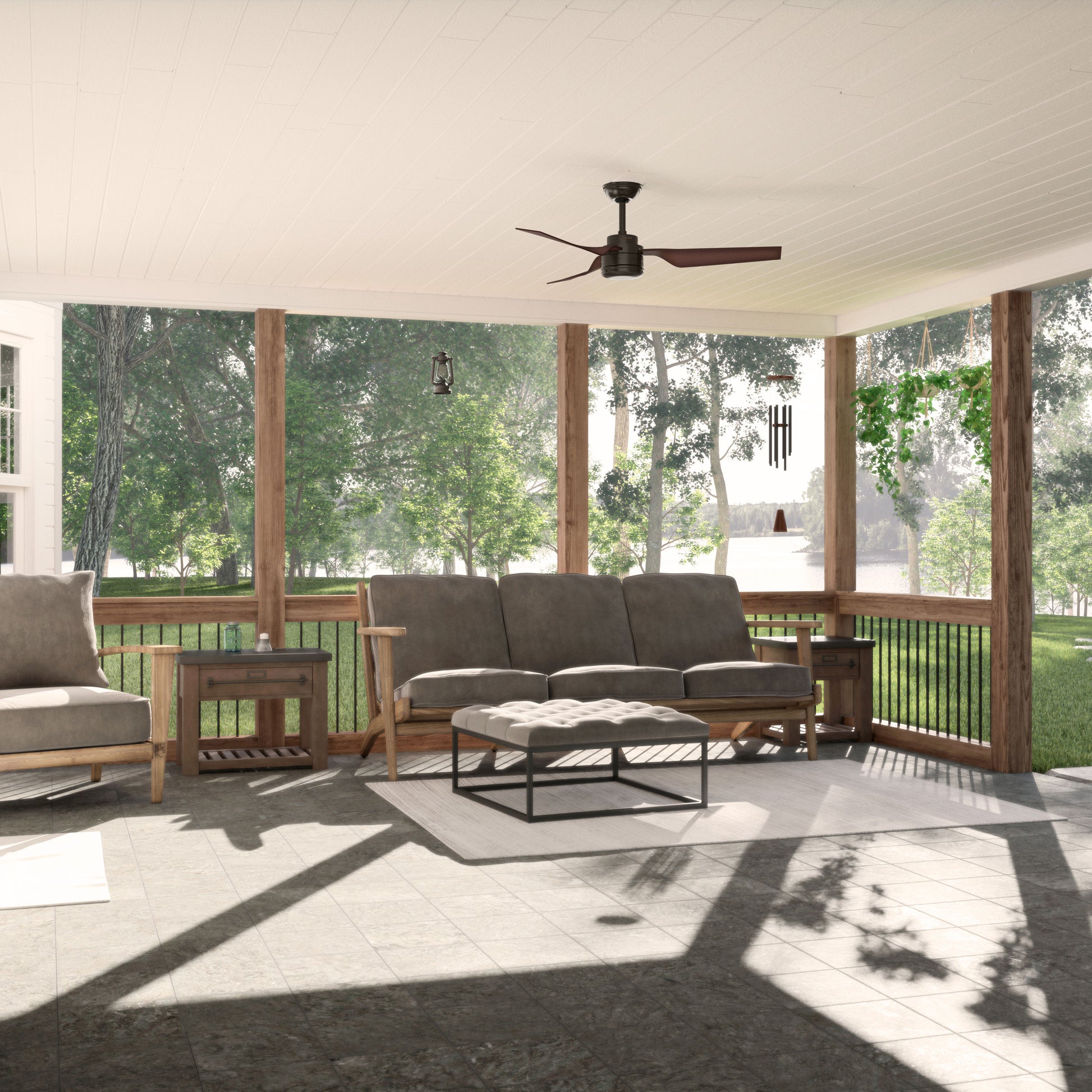 The Cabo Frio modern ceiling fan is damp-rated, making it perfect for covered outdoor spaces as well as indoor spaces. This outdoor ceiling fan comes with a wall control for easy adjustments to the fan's three speeds and on/off functionality. It features WhisperWind® motor technology to deliver ultra-powerful air movement with whisper-quiet performance. Available in three finishes, the Cabo Frio large ceiling fan without light adds a finishing touch to modern industrial rooms including bedrooms, patios, garages, and living rooms.