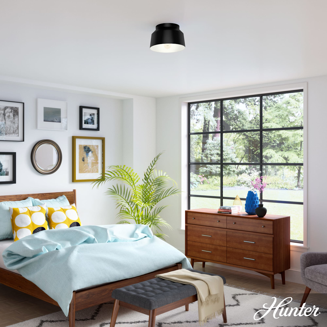 Just the right touch of vintage to update your space. Inspired by mid-century modern design and current influences, the Cranbrook mid-century modern flush mount light touts a unique hooded light available in a variety of neutral finishes and pops of color for any room. For those who like to coordinate, this flush mount light matches our Cranbrook ceiling fan collection.