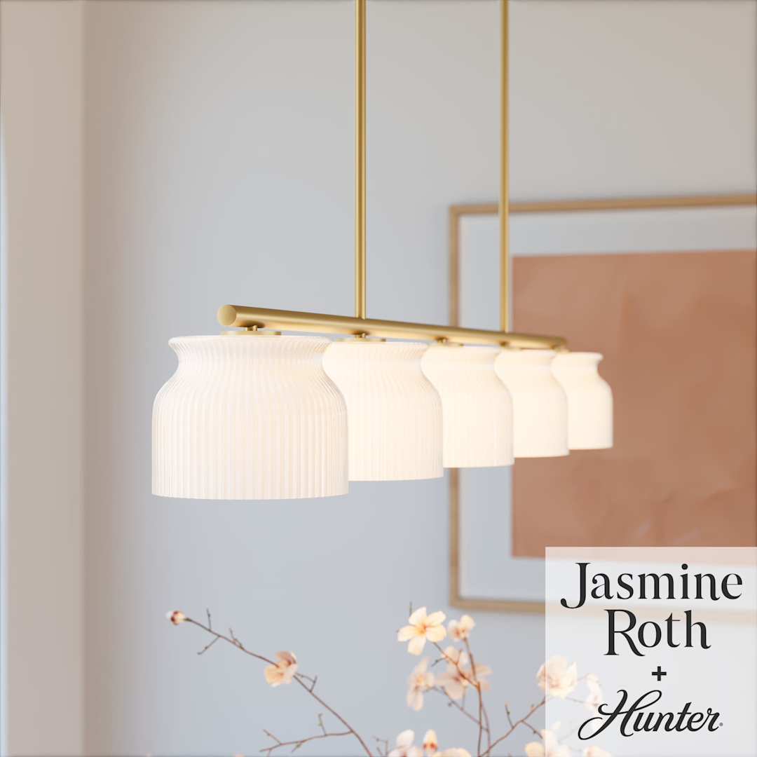 Bring a burst of brilliance to your space with the Harlowe 5 Light Island Linear fixture from the Jasmine Roth Collection. Perfect for long islands or rectangular tables, this fixture blends casual transitional style with modern elegance. Its five lights provide even distribution of light through high-quality ribbed milk glass, ensuring a warm, inviting glow. The scratch-resistant glass adds durability, making it a lasting centerpiece for your dining or kitchen area. Illuminate your home with both style and function, creating a beautifully lit space for any occasion.