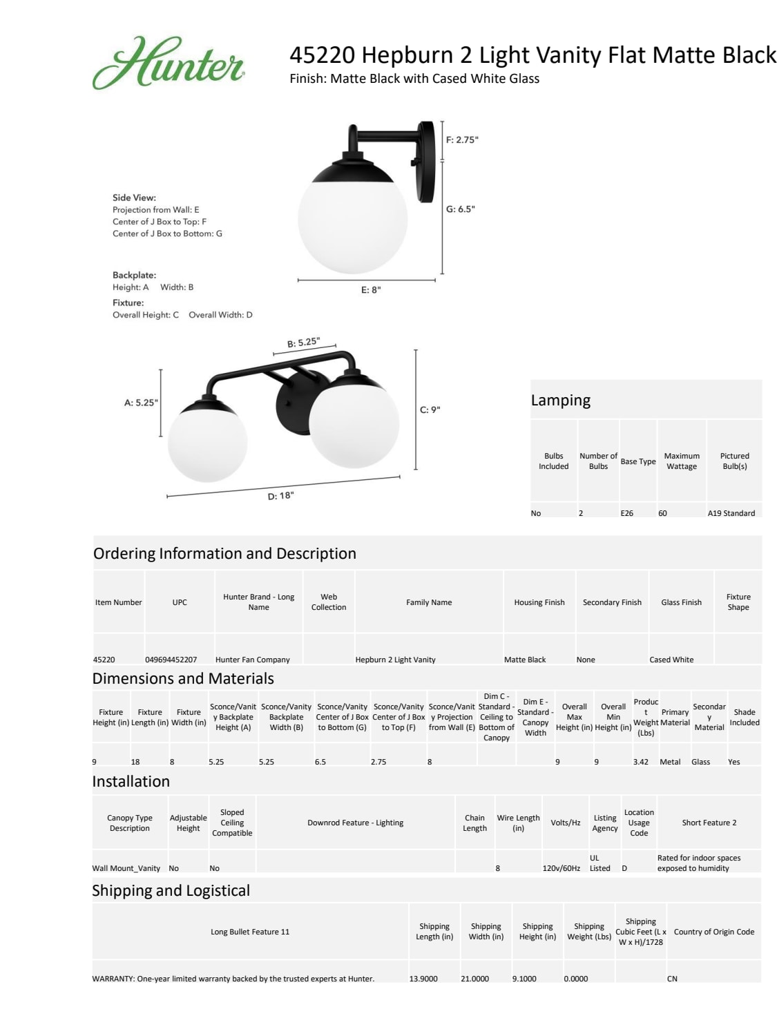 - WARRANTY: One-year limited warranty backed by the trusted experts at Hunter.