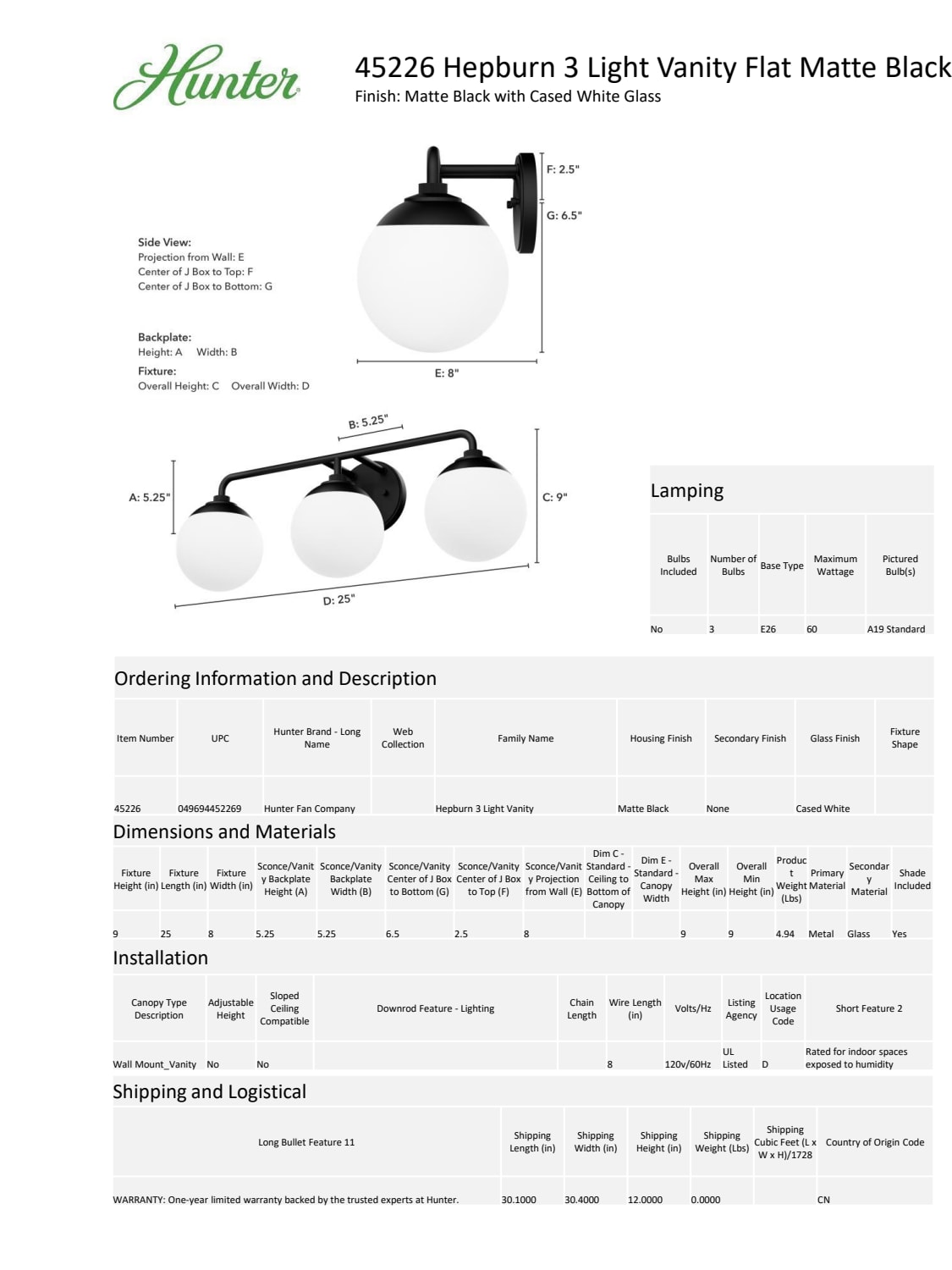 - WARRANTY: One-year limited warranty backed by the trusted experts at Hunter.