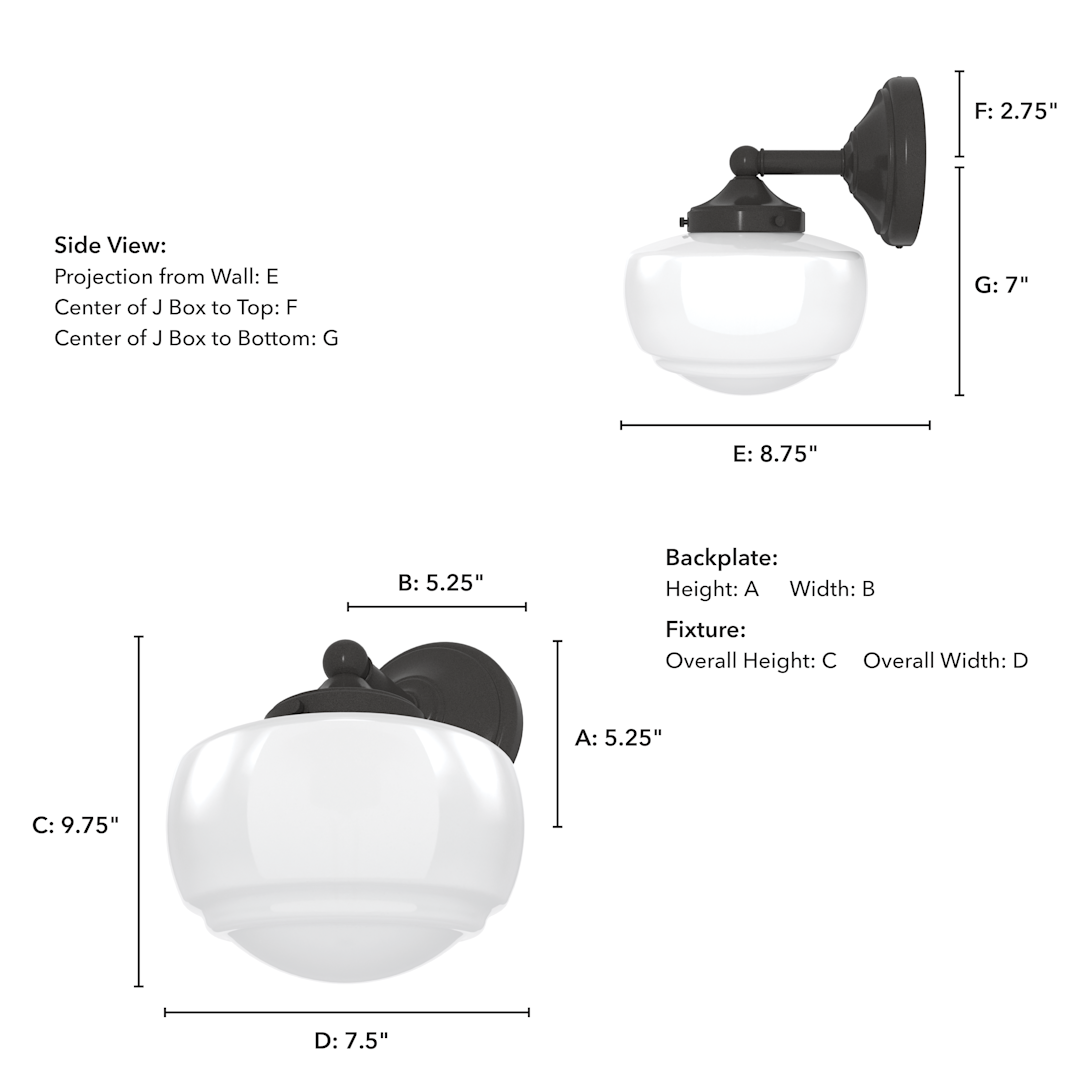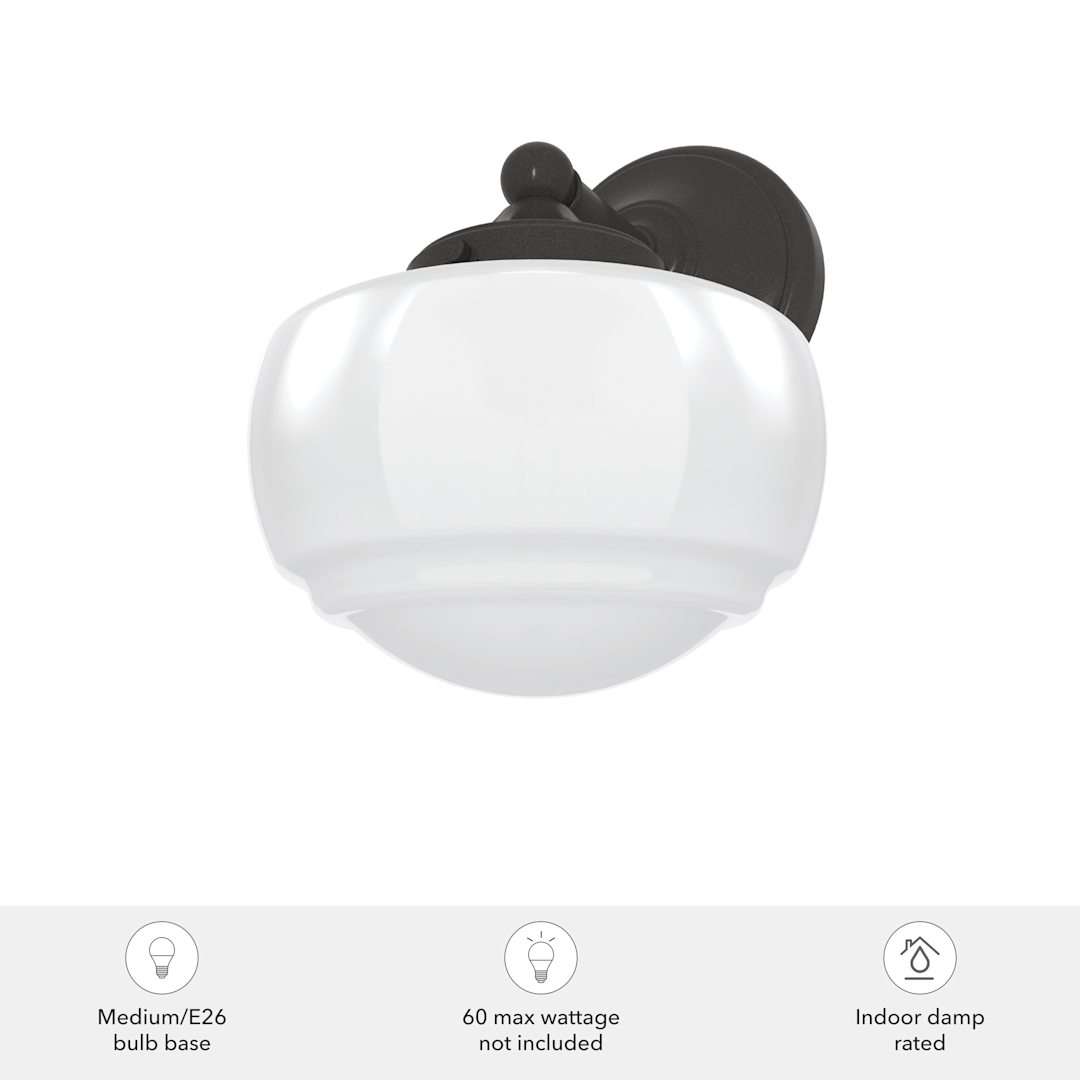 The Saddle Creek wall sconce combines traditional schoolhouse style with elevated elements to create a fresh spin on a classic design. Inspired by the iconic American schoolhouse light, the Saddle Creek illustrates the contemporary design principle of better, not more. The detailed glass shade complements the casual simplicity of the sconce's metal fittings and finish. Mix and match with other fixtures from this collection or from our ceiling fan designs.