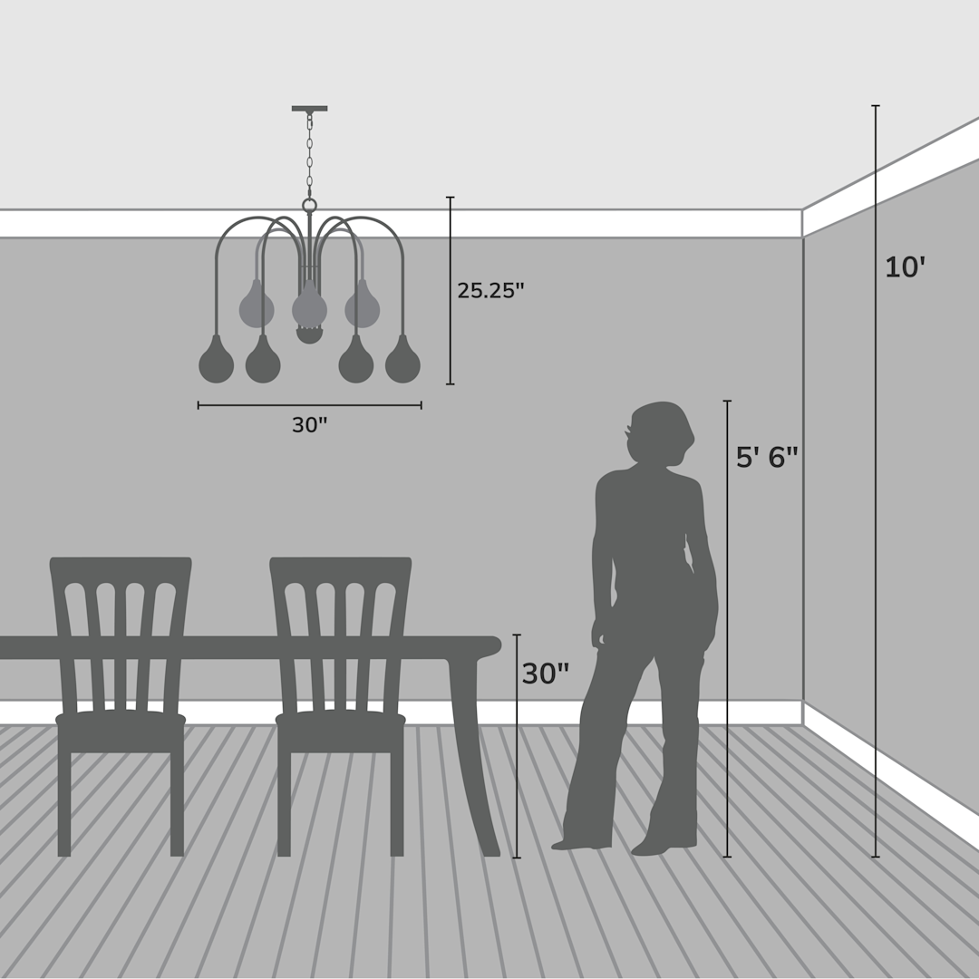 | Adjustable | Minimum overall height: 28.5 inches. Maximum overall height, when all included downrods are used: 101.25 inches. |